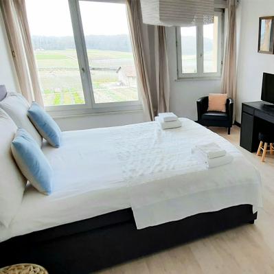 The Auberge de Duillier offers 20 rooms with a sweeping view of the hillside, the Alps and Lake Geneva. Guests travelling on business appreciate the peaceful atmosphere of the establishment in the La Côte wine-growing region. Our hotel/restaurant is located halfway between Geneva and Lausanne, just five minutes from Gland and Nyon.